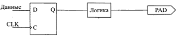 В этом случае ограничения накладываются на распространение сигнала с выхода одного регистра, тактируемого сигналом clock, до выхода другого регистра, также тактируемого сигналом clock, с учетом задержек на логике (рис. 3).
