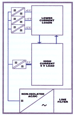 Преобразование небольших мощностей имеет несколько преимуществ по сравнению с централизованным мощным источником. Во-первых, можно работать на повышенных частотах, что уменьшает габариты индуктивностей. Во-вторых, можно использовать модульный принцип конструирования с применением стандартных компонентов и их автоматизированной сборкой.