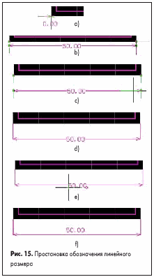 Текст размера приклеится к указателю мыши, как в режиме перемещения обычных текстовых надписей (рис.15e). Отметим, что это будет возможным только в случае, если опция Text Position задана как Manual, что мы сделали ранее.
