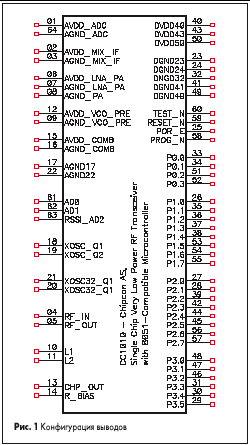 CC1010 — это CMOS RF-трансивер для частот 300 –1000 МГц, интегрированный с микроконтроллером 8051.