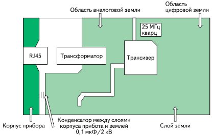 - аналоговая часть схемы стыка с Ethernet и проблемы защиты от электростатического разряда (ESD);